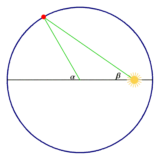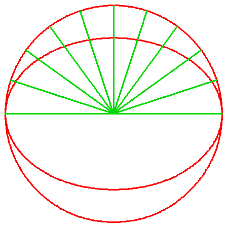 To illustrate Gauss' inverse method geometrically, take a new look at the trigonometric relationships. In the visible domain, the trigonometric relationships are generated as an effect of circular motion. But, as Cusa indicated (for which Kepler called him "divine"), the harmonic characteristics are found not in circular action alone, but in the incommensurability between the curved and the straight. Thus, Gauss thought of uniform circular motion as being merely the visible artifact of the more complex motion associated with circular functions.