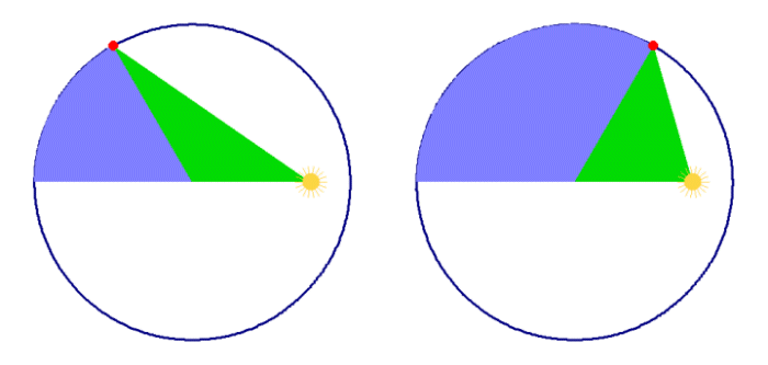 In a circular orbit the area swept out can be measured directly by the angle. In the elliptical orbit, as Kepler showed, the area swept out is measured by a circular sector and a rectilinear triangle. (See Figures 3).