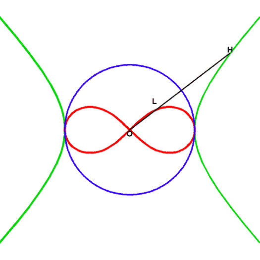 However, the lemniscate has a more general relationship to the generating principle of the conic sections, and to the elliptical functions in particular, that can be grasped intuitively from the higher standpoint of Gauss and Riemann. On the one hand, the lemniscate can be generated as the inversion of the hyperbola in a circle. (See Figure 7.)