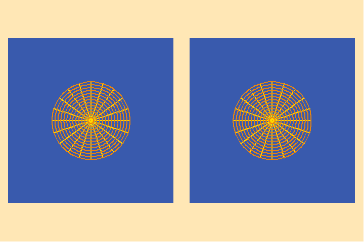 the animation, the number of segments of the left sphere is infinite. Thus,